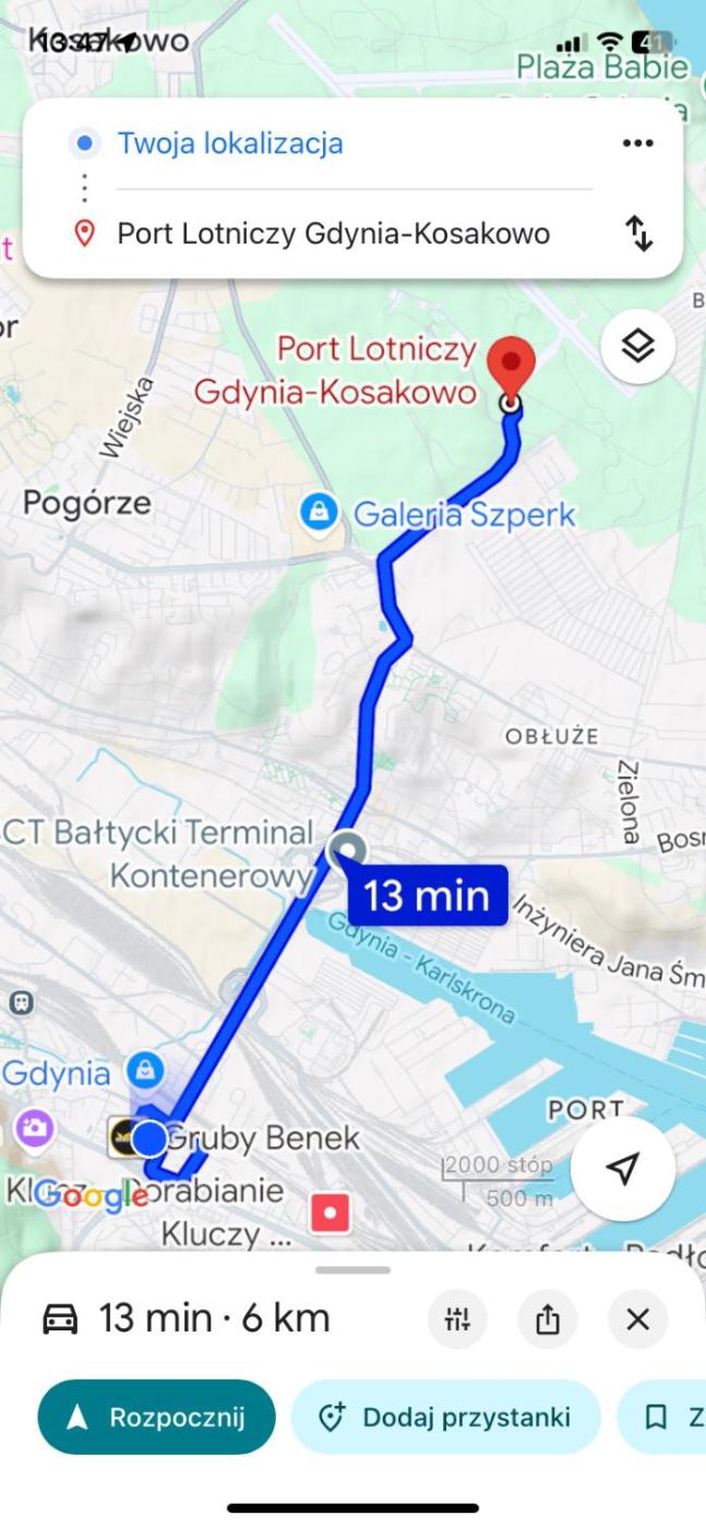 Odległość ważnych miejsc od obiektu: Skwer Kościuszki – 5,3 km, Ulica Świętojańska – 5,4 km. Lotnisko Lotnisko Gdańsk-Rębiechowo znajduje się 24 km od obiektu.