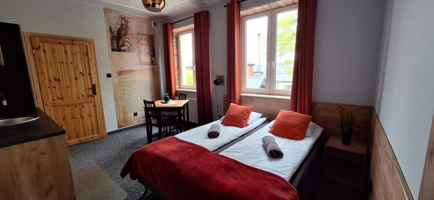 Mały pokój Dwuosobowy. Providing free toiletries, this double room includes a private bathroom with a shower and a hairdryer. In the kitchenette, guests will find a stovetop, a refrigerator, kitchenware and a tea and coffee maker. This double room features a dining area, a wardrobe, a flat-screen TV and an outdoor dining area. The unit offers 2 beds. Pokój Dwuosobowy - 2 osobowy. Powierzchnia pokoju ok.: 18 mkw. ;