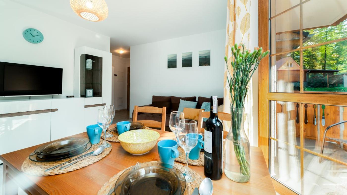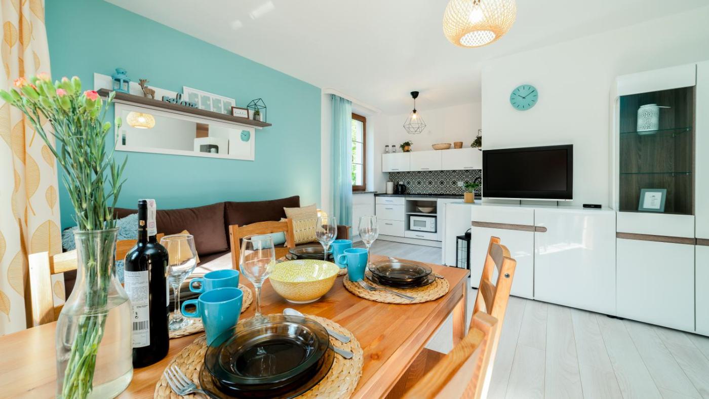 Apartament. Boasting a private entrance, this apartment comes with 1 living room, 1 separate bedroom and 1 bathroom with a walk-in shower and a hairdryer. Guests can make meals in the kitchenette that features a stovetop, a refrigerator, kitchenware and a microwave. Featuring a balcony with garden views, this apartment also features a washing machine and a flat-screen TV with cable channels. The unit has 4 beds. Apartament - 6 osobowy. Powierzchnia pokoju ok.: 36 mkw.