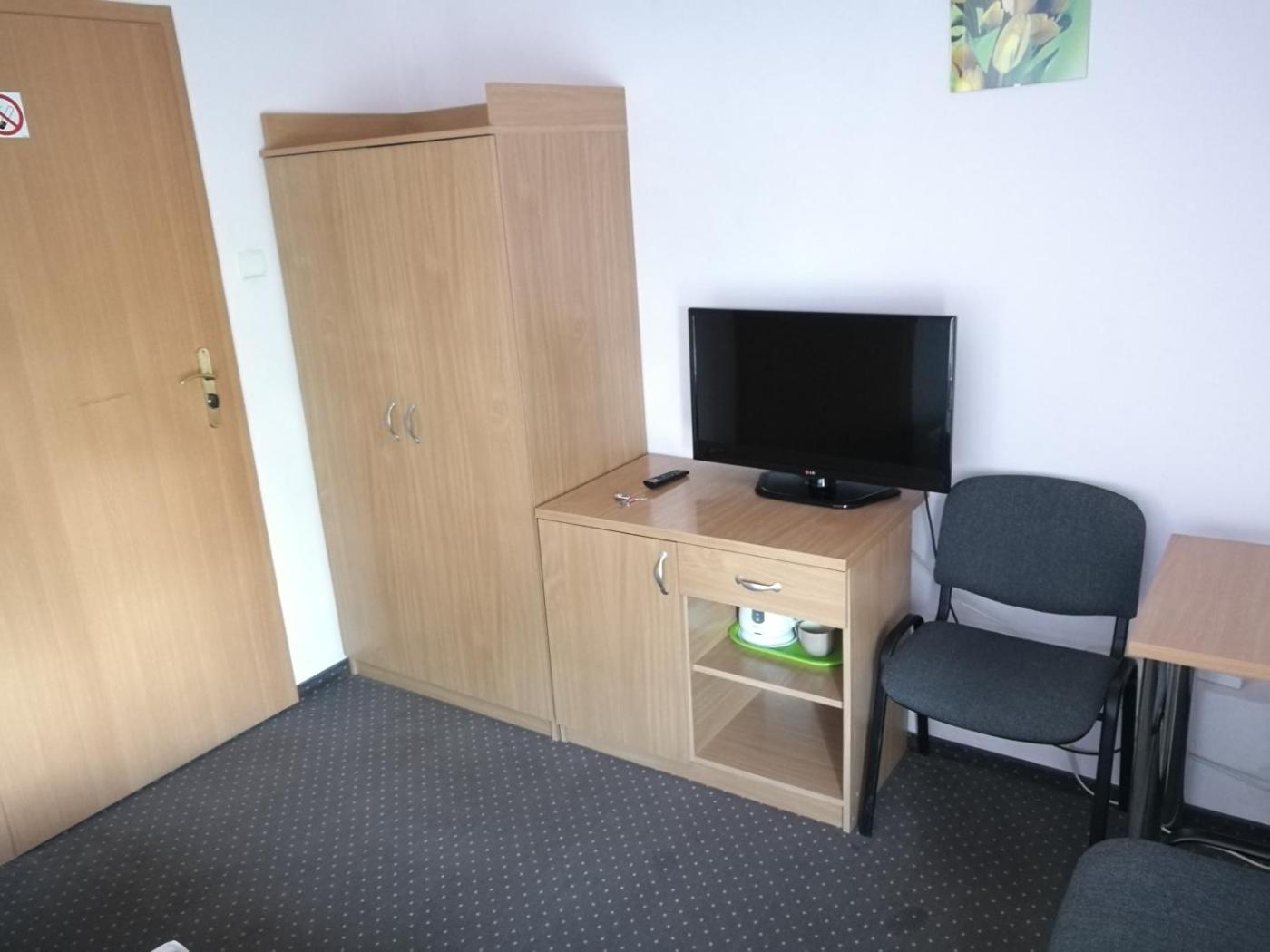 Pokój trzyosobowy. This room features a flat-screen TV and a bathroom. Pokój Trzyosobowy - 3 osobowy. Powierzchnia pokoju ok.: 15 mkw. ;